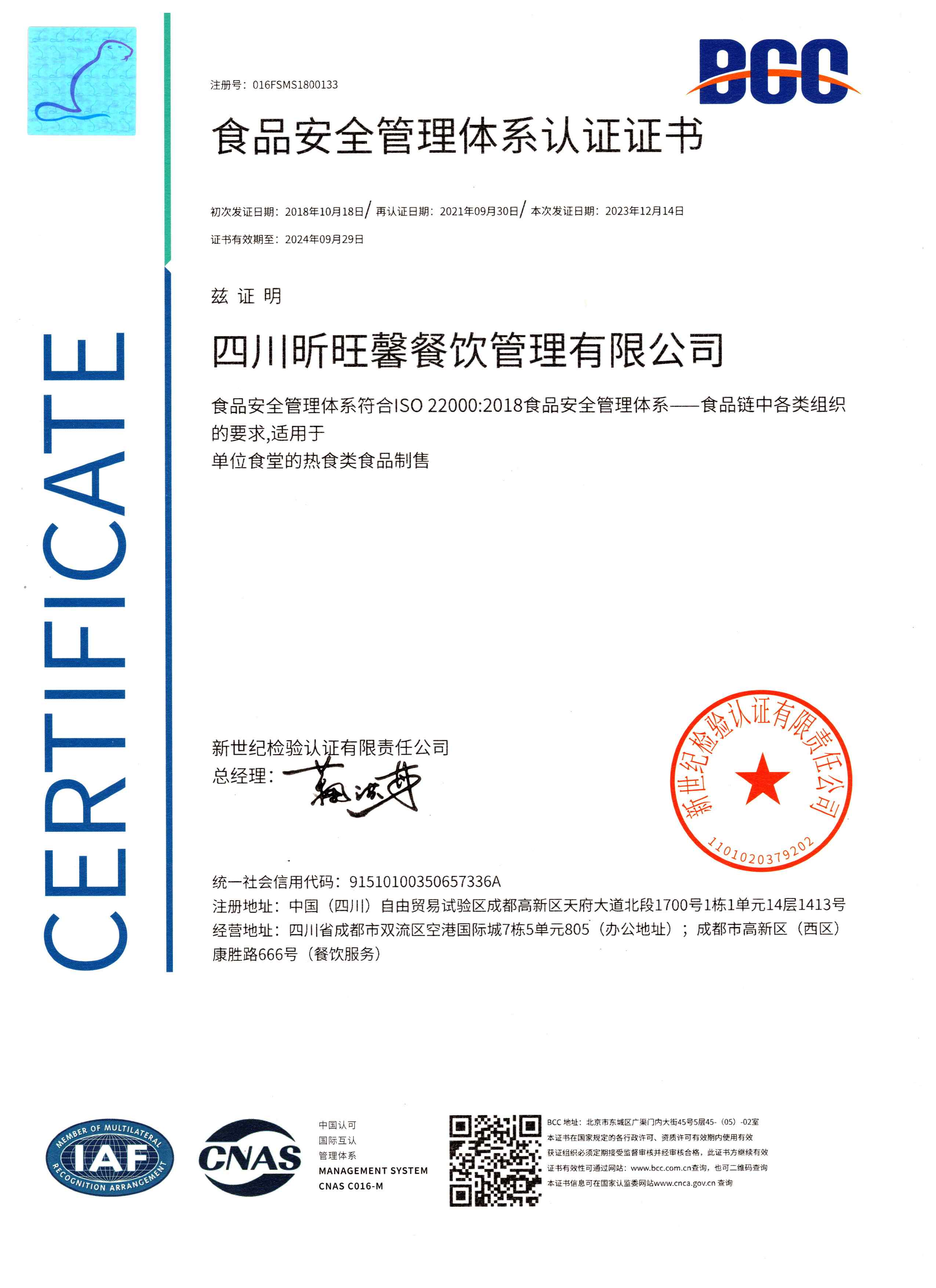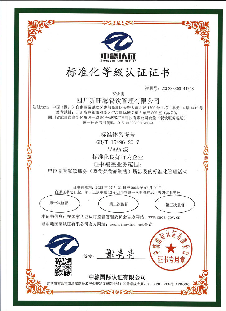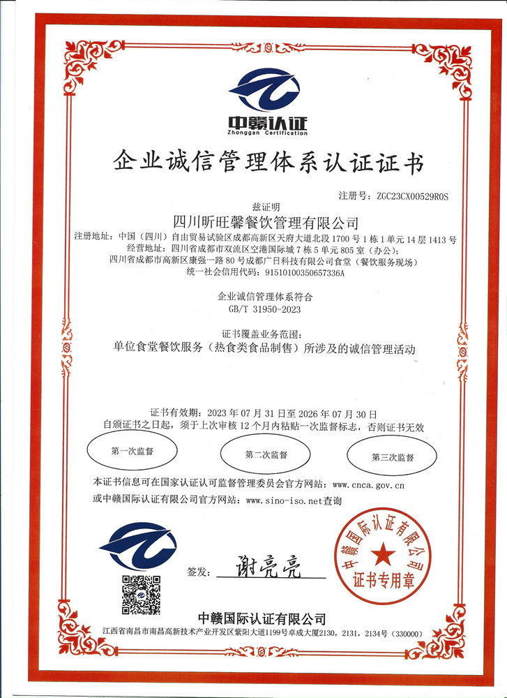 四川昕旺馨餐饮管理有限公司成立于2015年,是一家集专业团膳、营养配餐为一体,具有极强发展潜力的团餐公司。目前公司拥有员工600多人,其中高级技师120人,健康管理师18人,中国烹饪大师1人,同时就餐人数达1万多人。公司与四川省第三产业协会团餐委员会达成战略合作,吸纳具有丰富餐饮管理经验的专家和大师的建议,形成了具有鲜明特色的经营模式和管理方法。以管理创新为目标、以服务质量为生存、不断提高公司整体职业素养,重点发展企事业单位、大中小学校、医院等后勤膳食服务的专业领域。我们在确保安全、卫生、美味、健康、贴心、反应快速的基础上虚心接受顾客的建议和意见,切实加强公司内部培养,竭力满足客户需要,从而更好的做好保障工作,同时也得到顾客和各级的认可和好评。
